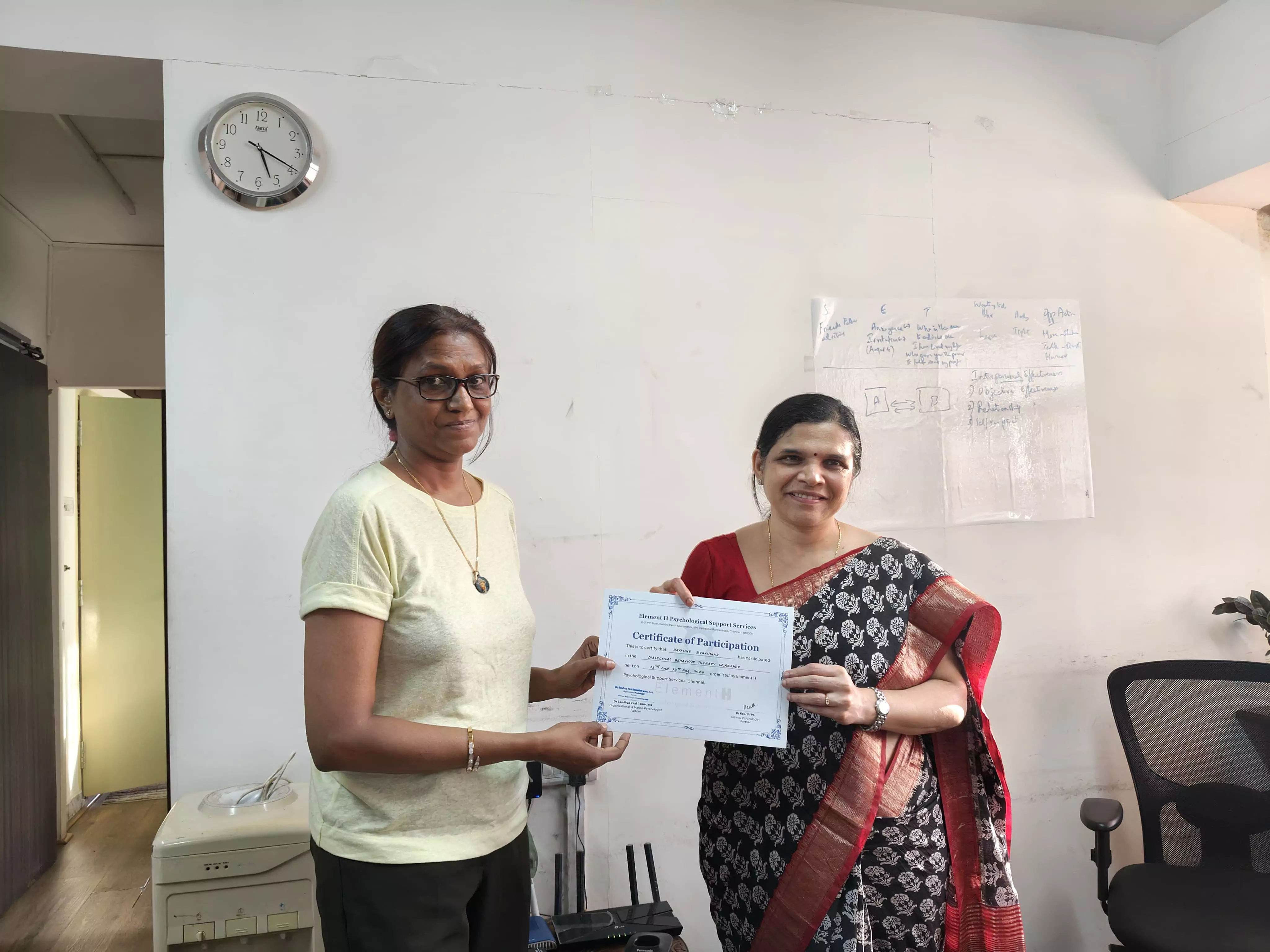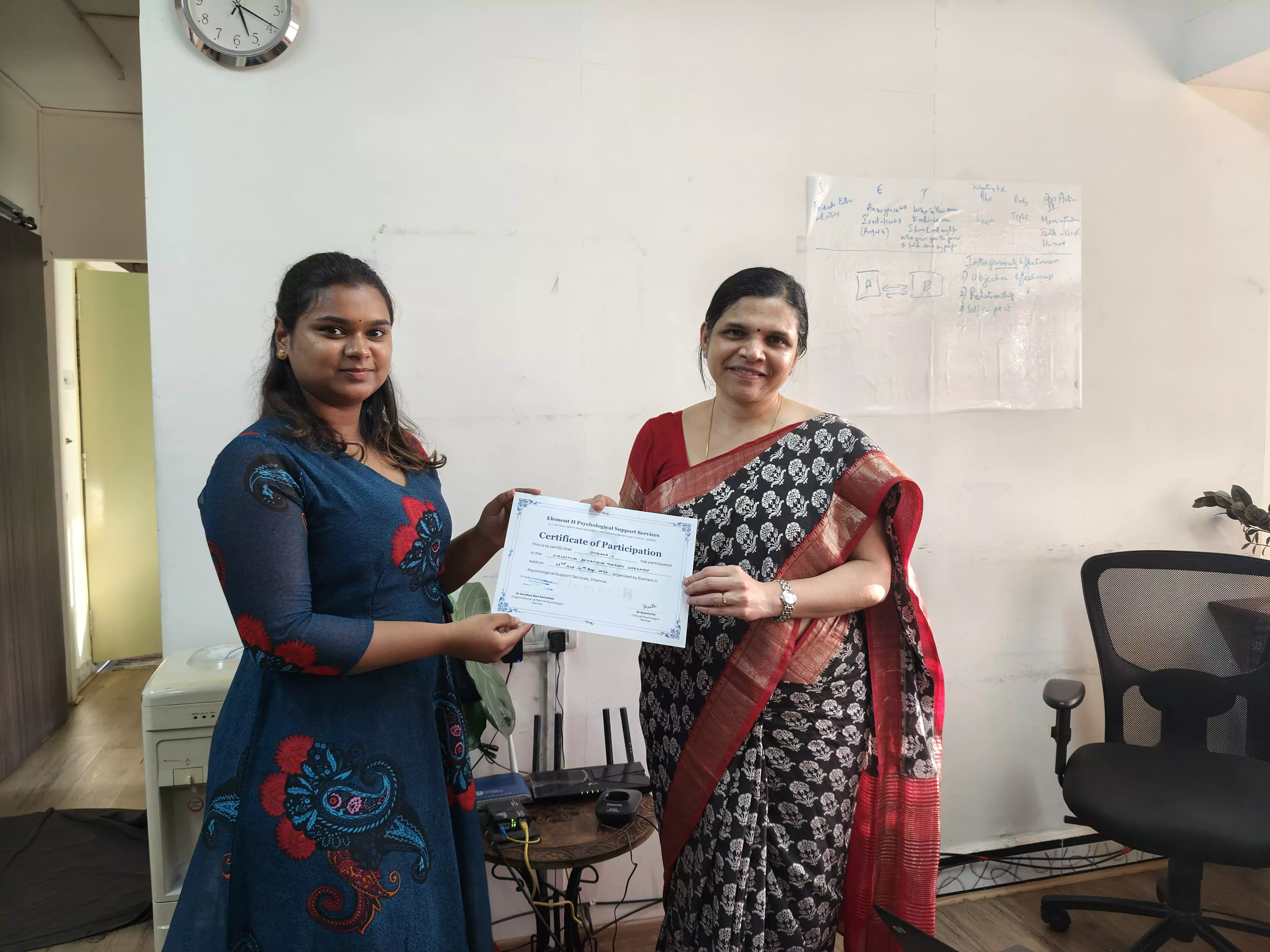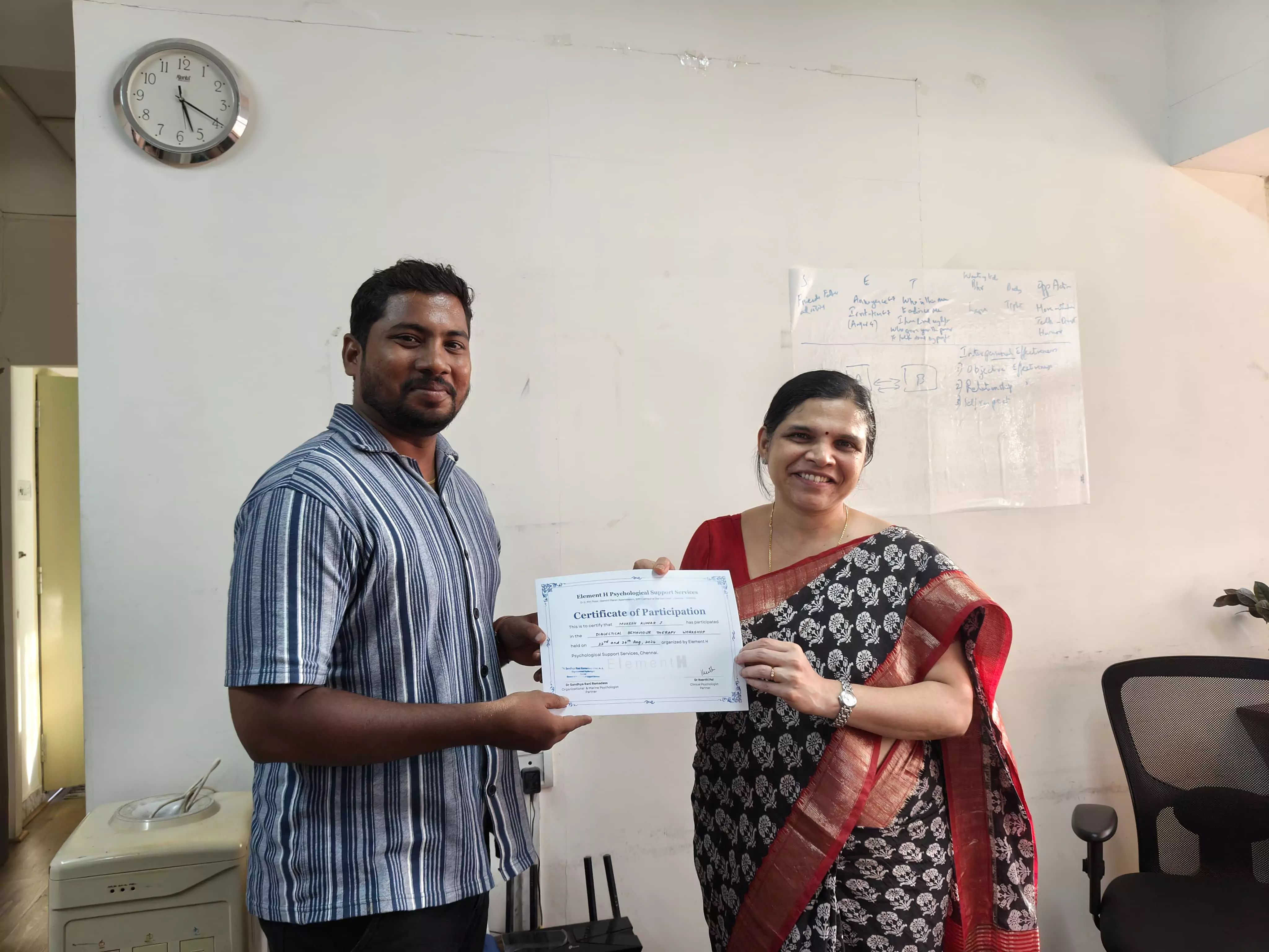 2-day workshop on Dialectical Behaviour Therapy (DBT) by Dr. Keerthi Pai, a Clinical Psychologist at Element-H Psychological Support Services. This hands-on training provided a comprehensive understanding of both theoretical frameworks and practical applications of DBT.