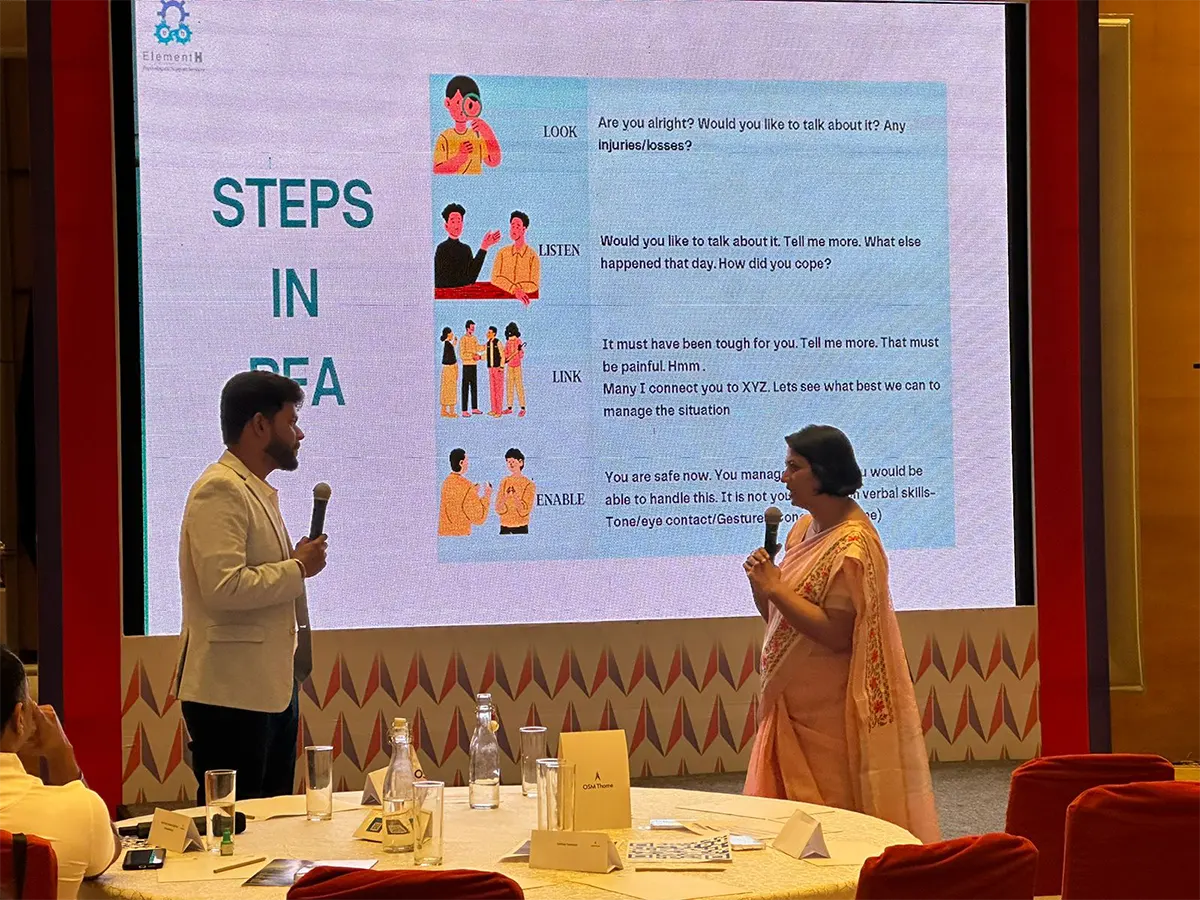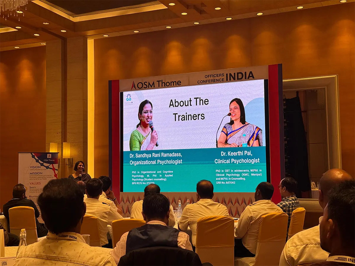 OSM Thome Maritime invited Dr.Sandhya Rani Ramadass and Dr.Keerthi Pai for a Psychological First Aid workshop at their Officers Conference at Hyatt Regency, Chennai