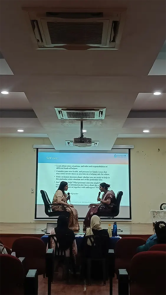 Department of Applied Psychology and Behavioral Research of Justice Basheer Ahmed Sayeed College for Women and Tamil Nadu State Council for Higher Education organized the National seminar on Mental Health Issues and Intervention during times of Uncertainty. Dr. Keerthi Pai handled a practical session on Psychological First Aid.