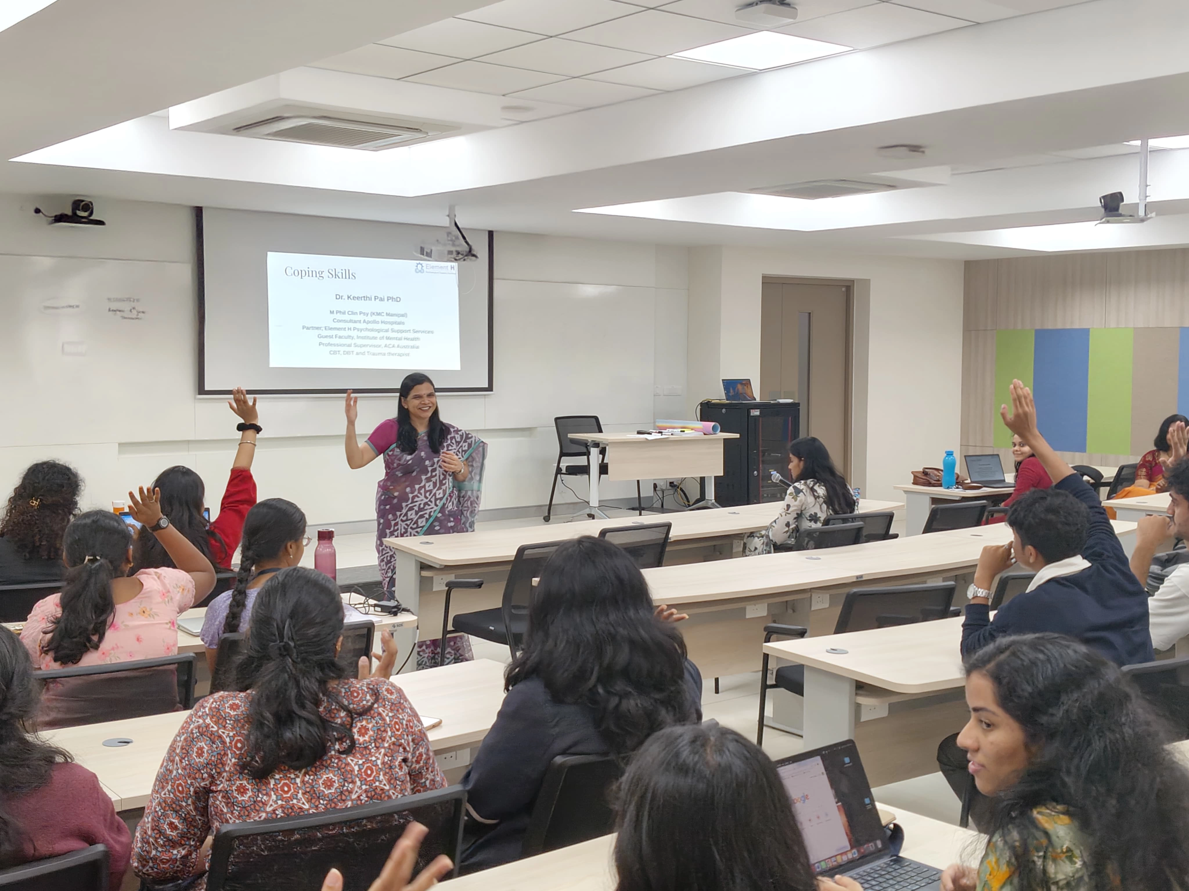 Dr Keerthi Pai, Dr V Sujatha, and Ms. Mahima from Team Element-H conducted an enriching workshop for the students of Shiv Nadar University School of Law, focusing on mental health, resilience and key life skills which sparked meaningful conversation and gave participants practical tools to handle relationships, stress and personal growth.