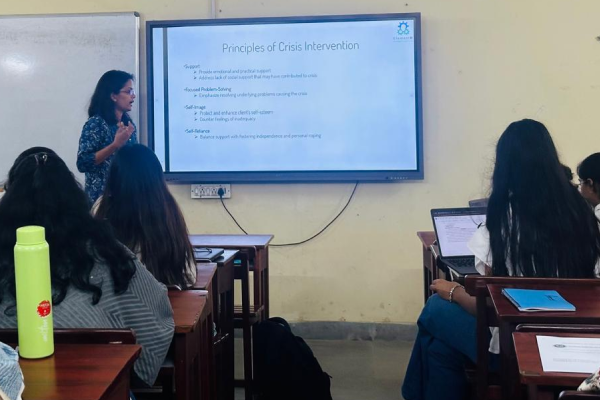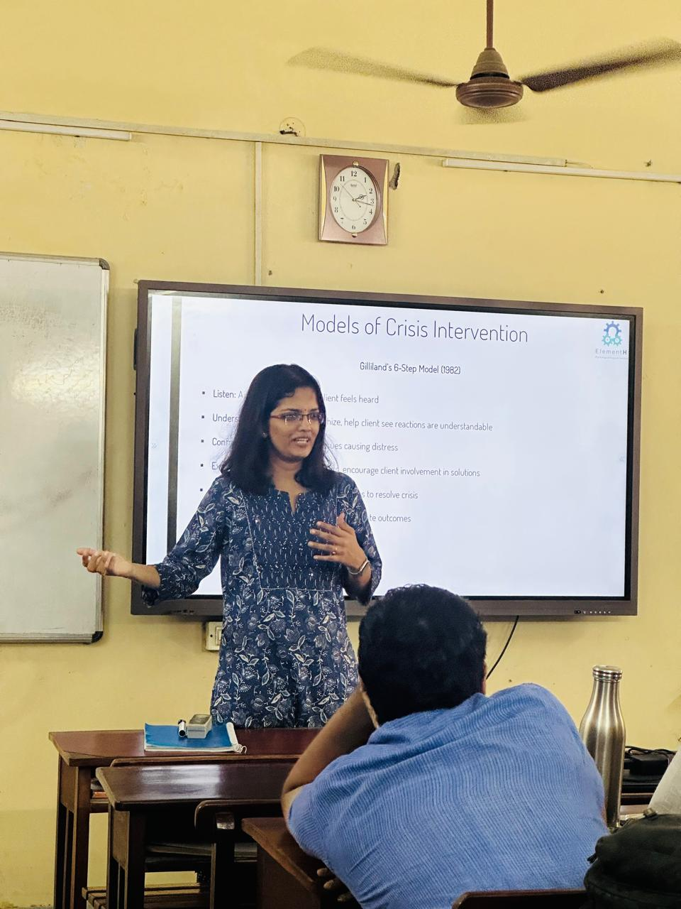 Ms. Shruti Mohan conducted a workshop on Crisis Intervention (Crisis to care) for the M.Sc. Counselling Psychology students at the Madras School of Social Work in observance of World Mental Health Day.